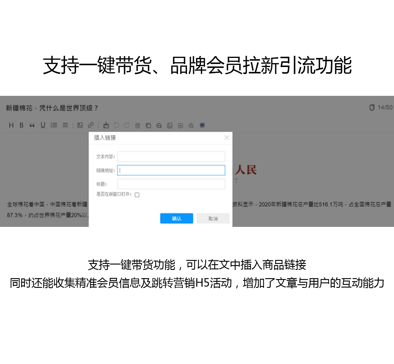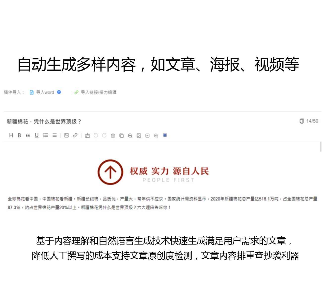 智能可視化運營(yíng)平臺,原創(chuàng )素材、自動(dòng)化寫(xiě)稿,一鍵發(fā)布,多渠道轉發(fā),精準推送高效轉化,視頻圖文一鍵轉換,千人千面的營(yíng)銷(xiāo)活動(dòng),鏈接商城、地理位置定位,精準實(shí)現O2O全域自動(dòng)銷(xiāo)售,打造高效運營(yíng)體系。